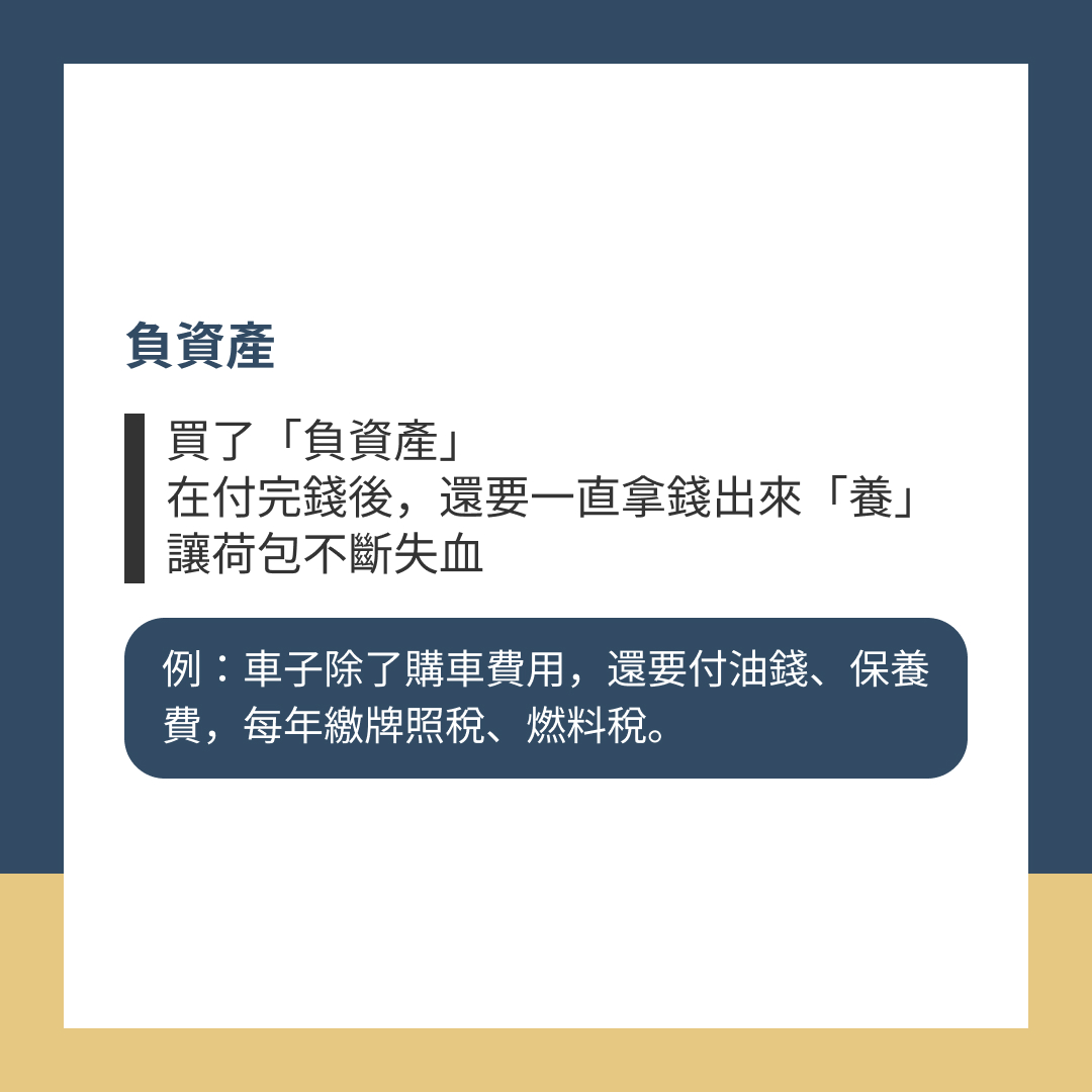 買了「負資產」,在付完錢後,還要一直拿錢出來「養」,讓荷包不斷失血