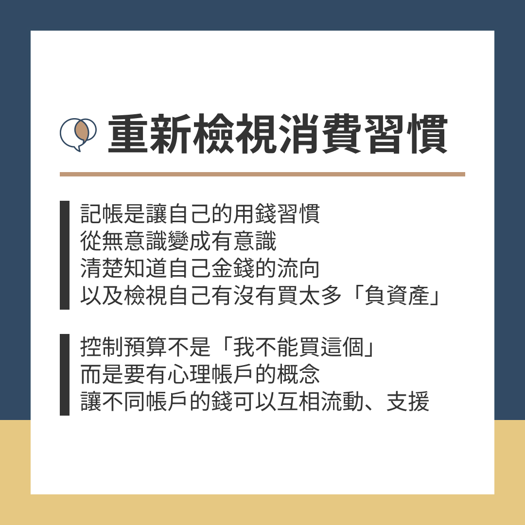 控制預算不是「我不能買這個」,而是要有心理帳戶的概念,讓不同帳戶的錢可以互相流動、支援