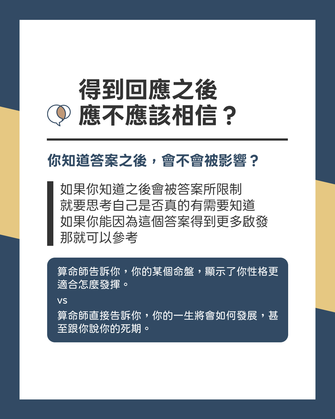 如果你知道之後會被答案所限制,就要思考自己是否真的有需要知道;如果你能因為這個答案而得到更多啟發,那就可以參考