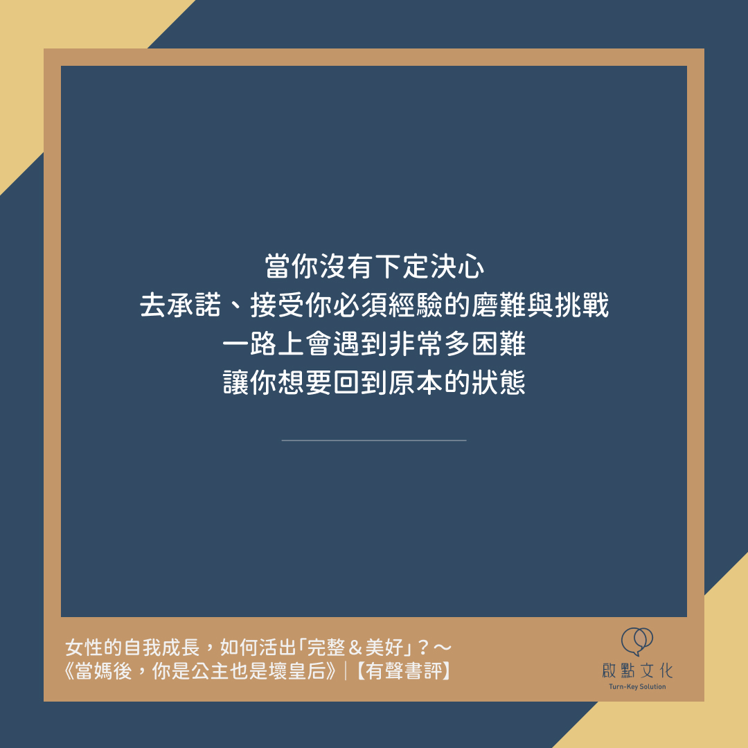 當你沒有下定決心,去承諾、接受你必須經驗的磨難與挑戰,一路上會遇到非常多困難,讓你想要回到原本的狀態