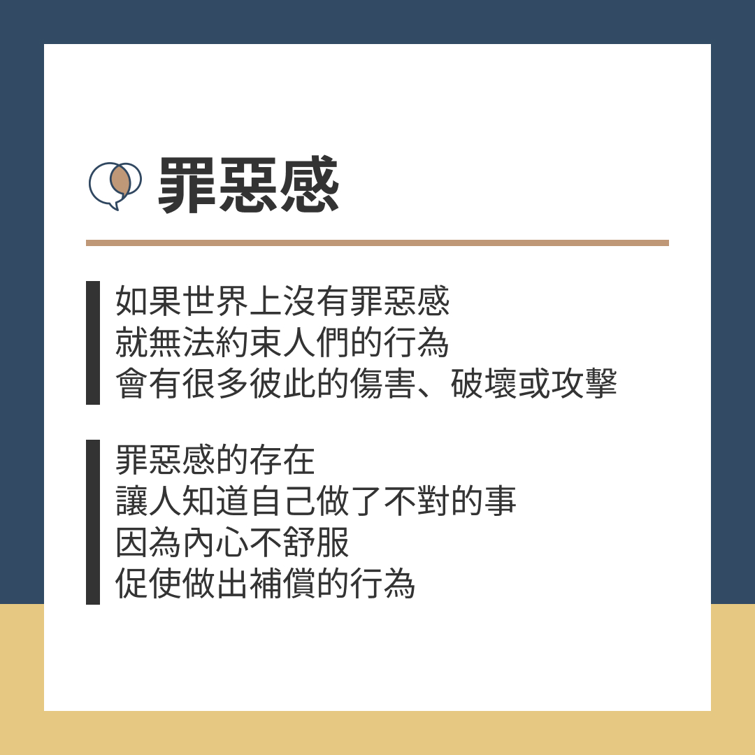 罪惡感的存在,讓人知道自己做了不對的事,因為內心不舒服,促使做出補償的行為