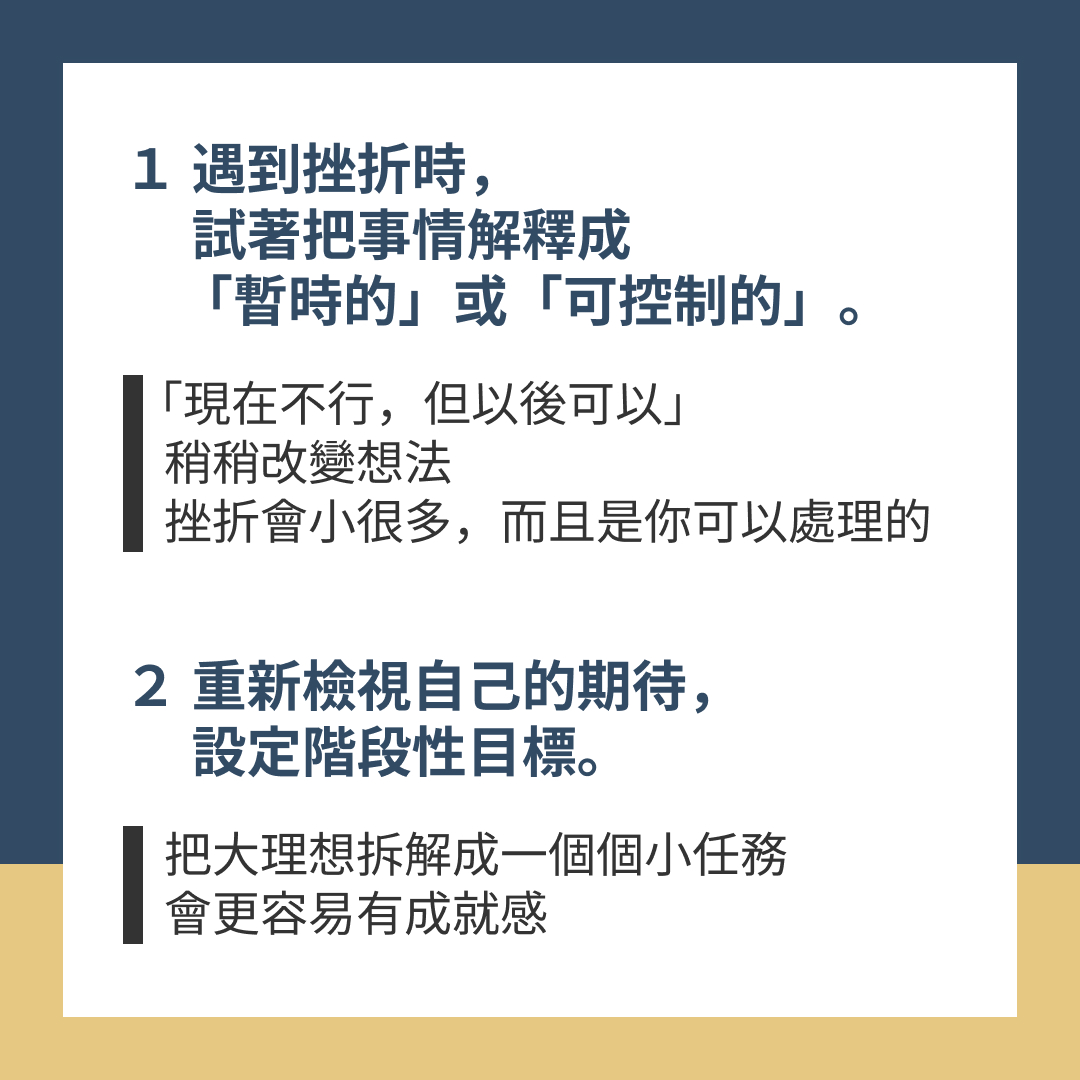 1. 當你遇到挫折時,試著把事情解釋成「暫時的」或「可控制的」