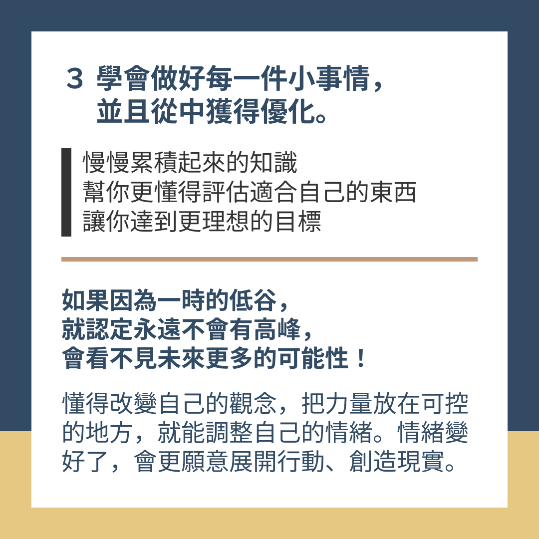 3. 學會做好每一件小事情,並且從中獲得優化