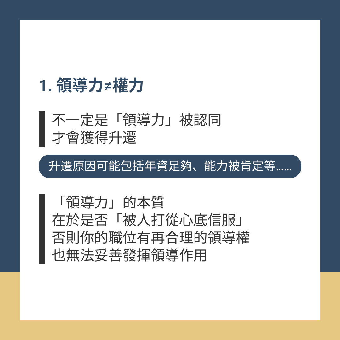 「領導力」的本質,在於是否「被人打從心底信服」,否則你的職位有再合理的領導權,也無法妥善發揮領導作用
