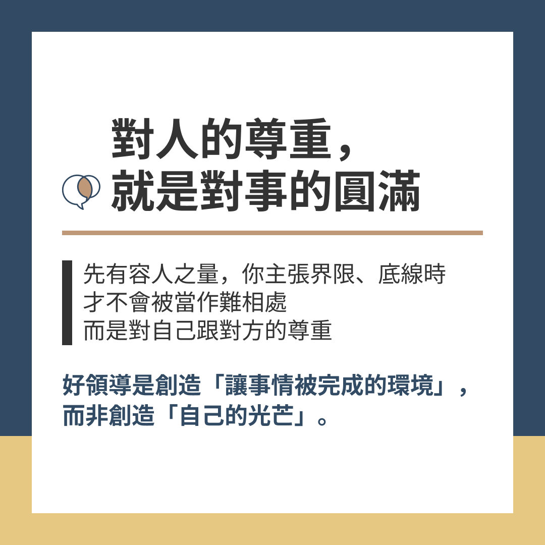 → 好領導是創造「讓事情被完成的環境」,而非創造「自己的光芒」。