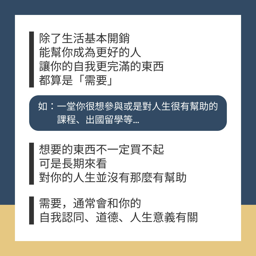 除了生活基本開銷,能幫你成為更好的人、讓你的自我更完滿的東西,都算是「需要」
