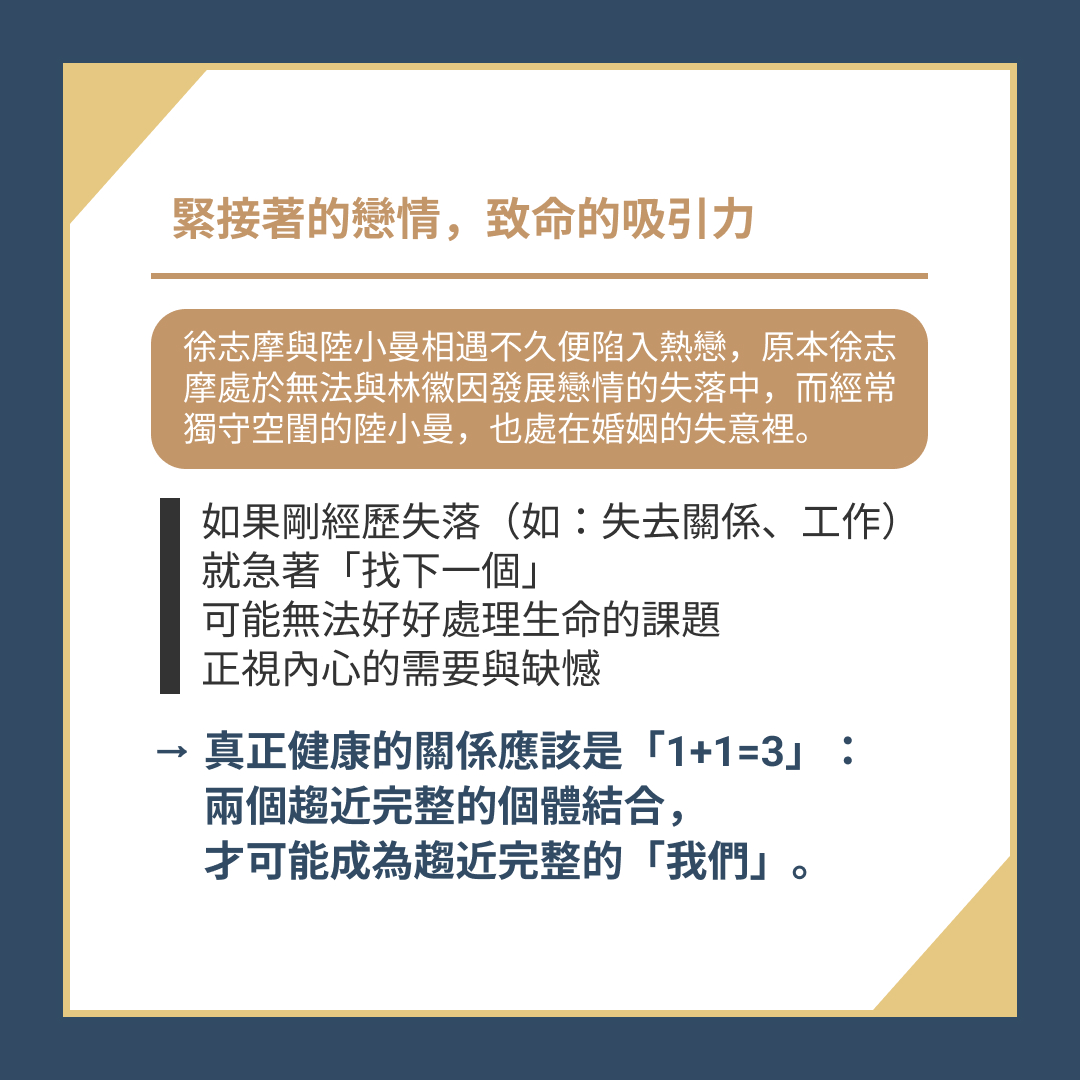 ※ 反觀陸小曼與徐志摩,則是一直在追逐浪漫,而非建立關係。