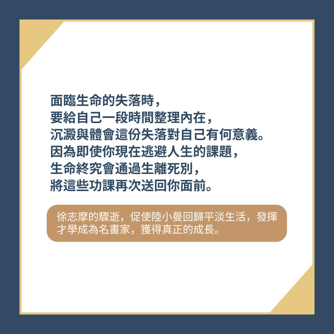→ 面臨生命的失落時,要給自己一段時間整理內在,沉澱與體會這份失落對自己有何意義。