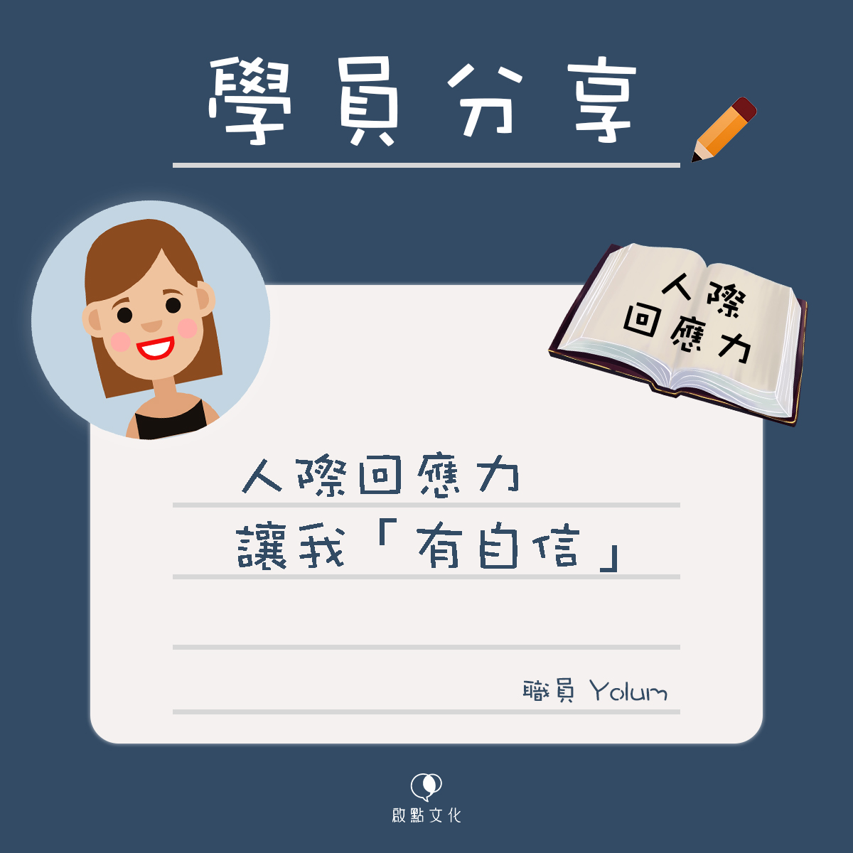 《人際回應力學員分享》人際回應力讓我「有自信」 ~ Yolum