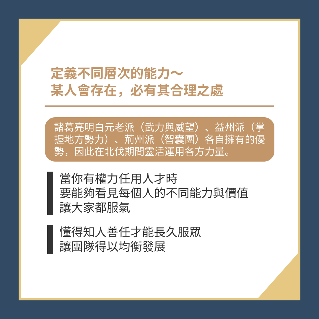 當你有權力任用人才時,要能夠看見每個人的不同能力與價值,讓大家都服氣