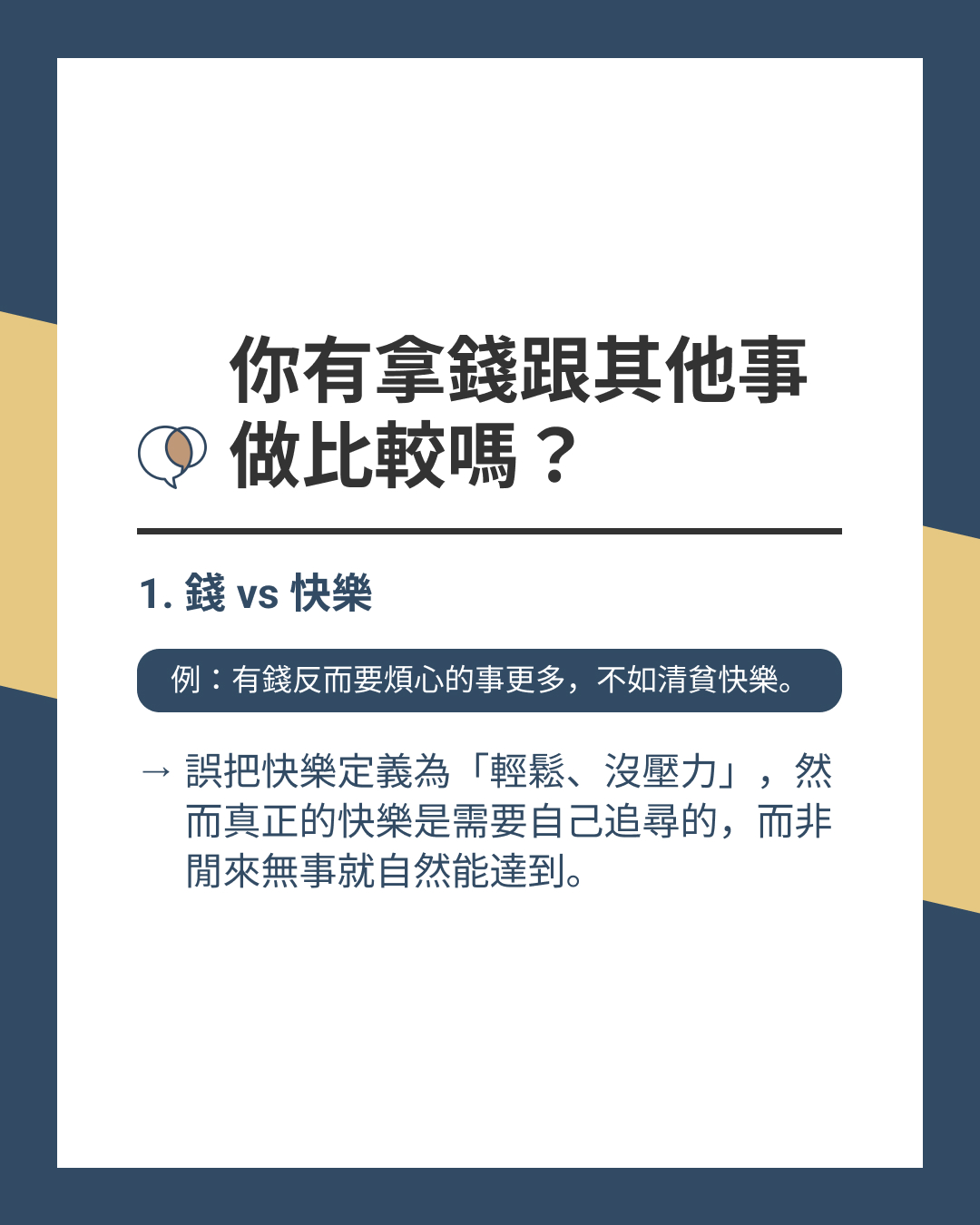 → 誤把「快樂」定義為「輕鬆、沒壓力」,但其實真正的快樂是需要自己追尋的,而非閒來無事就自然能達到。