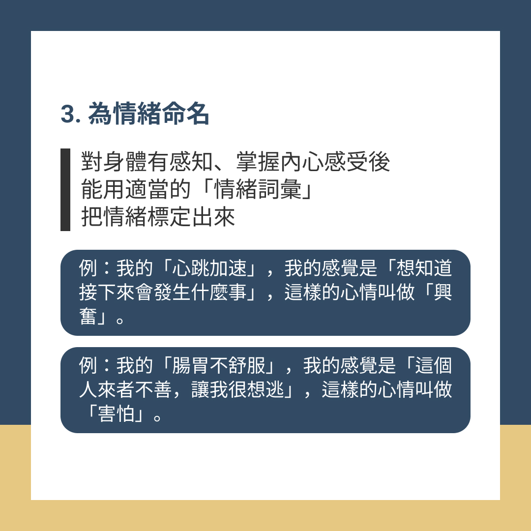對身體有感知、掌握內心感受後,能用適當的「情緒詞彙」,把情緒標定出來
