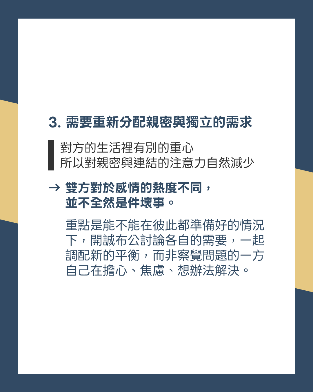 對方的生活裡有別的重心,所以對親密與連結的注意力自然減少