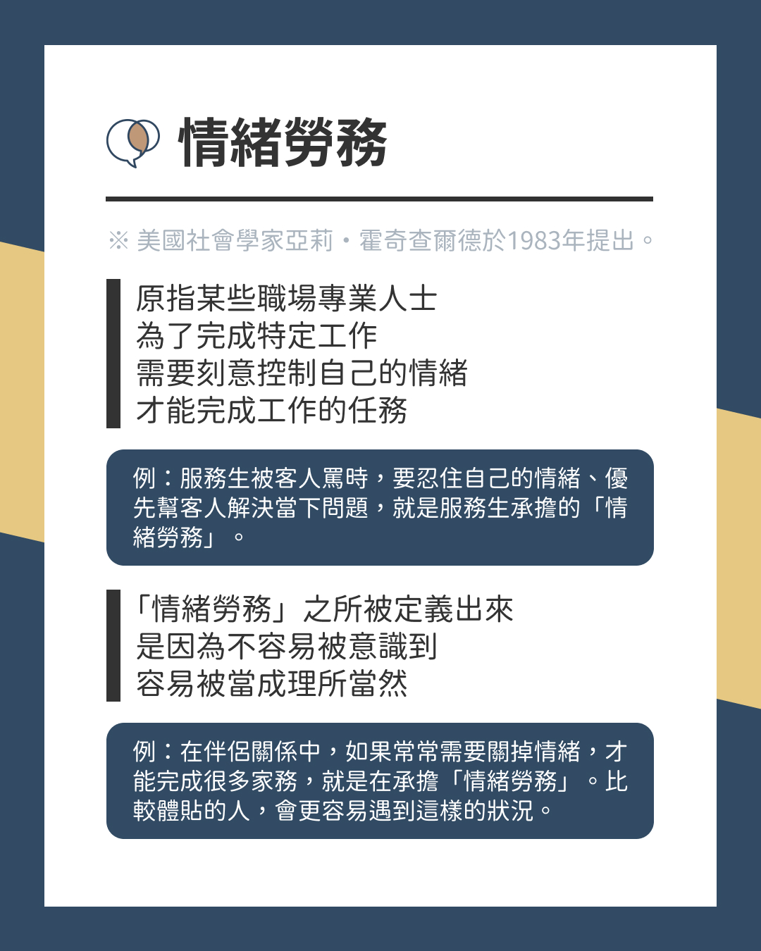 原指某些職場專業人士,為了完成特定工作,需要刻意控制自己的情緒,才能完成工作的任務