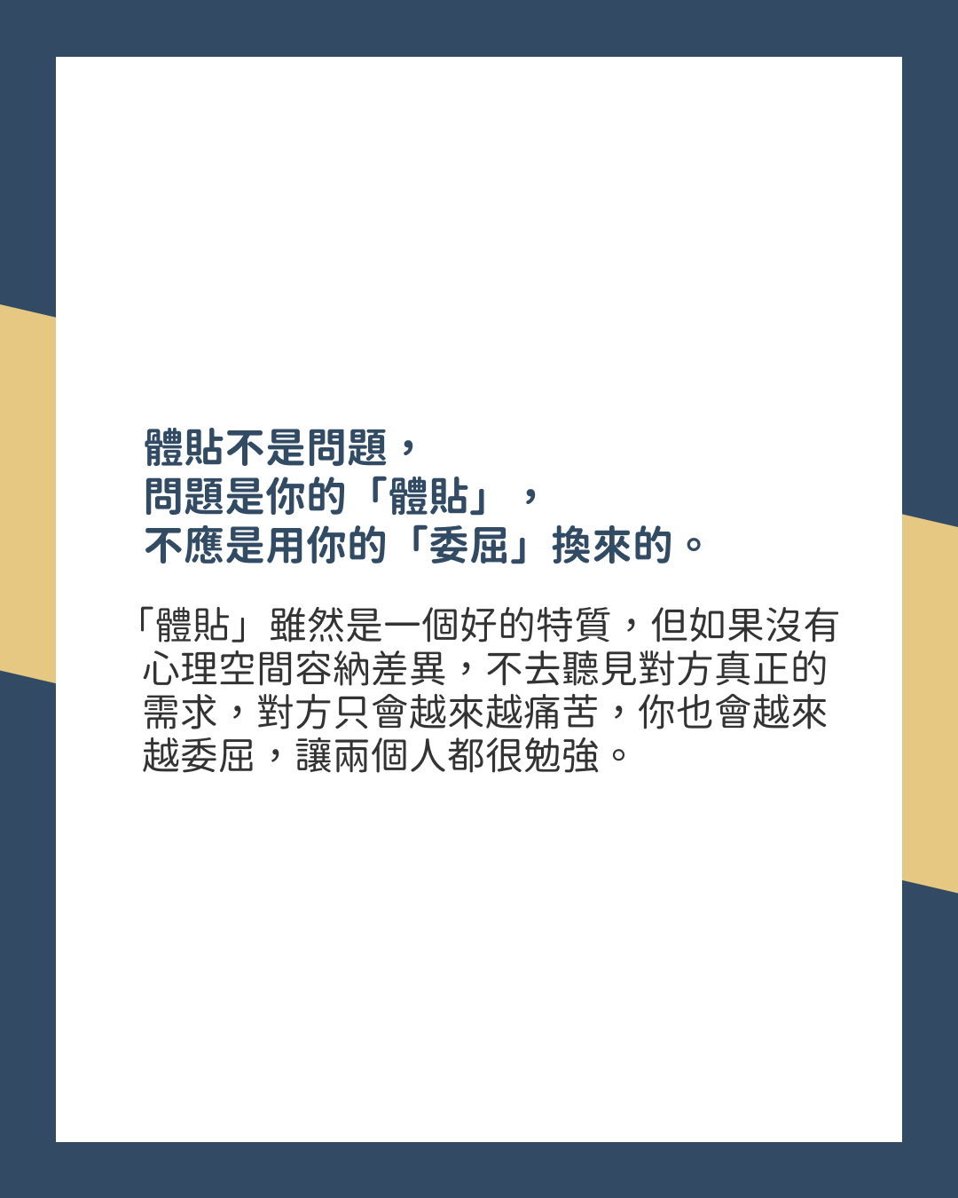 體貼不是問題,問題是你的「體貼」,不應是用你的「委屈」換來的。