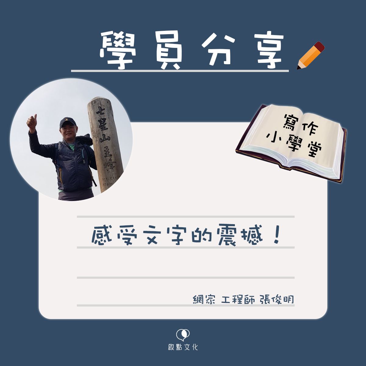 《寫作小學堂─學員分享》感受文字的震撼~網家 工程師 張俊明