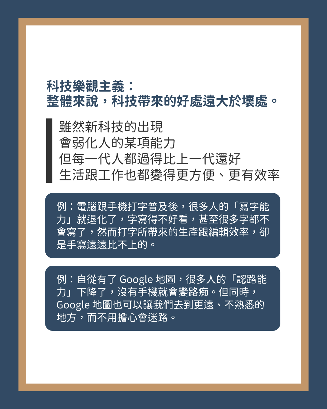 → 科技樂觀主義:整體來說,科技帶來的好處,遠遠大於壞處。