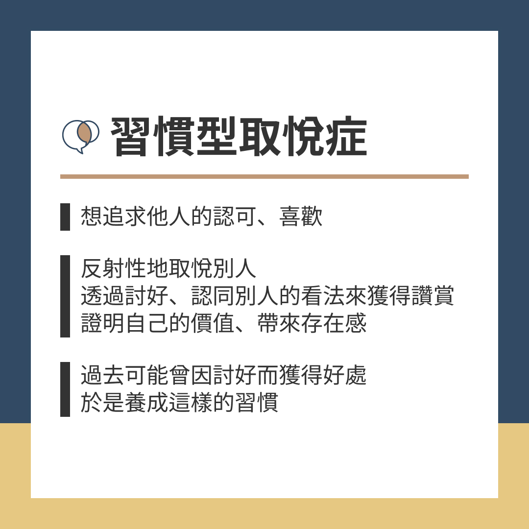 過去可能曾因討好而獲得好處,於是養成這樣的習慣