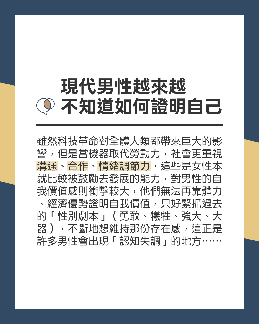 → 關係最珍貴的地方,是試著不帶預設地靠近對方。雖然不可能每件事情都能好好溝通,但重點不是對方如何回應,而是你有沒有覺得自己真的盡了力。