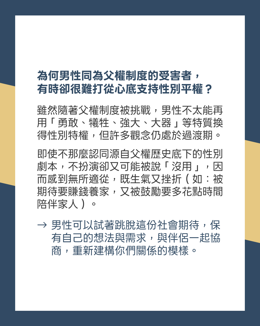 → 練習「換句話說」:如果不使用「不上進」這個詞,有沒有更好的說法,描述你的感覺或伴侶的狀態與行為?