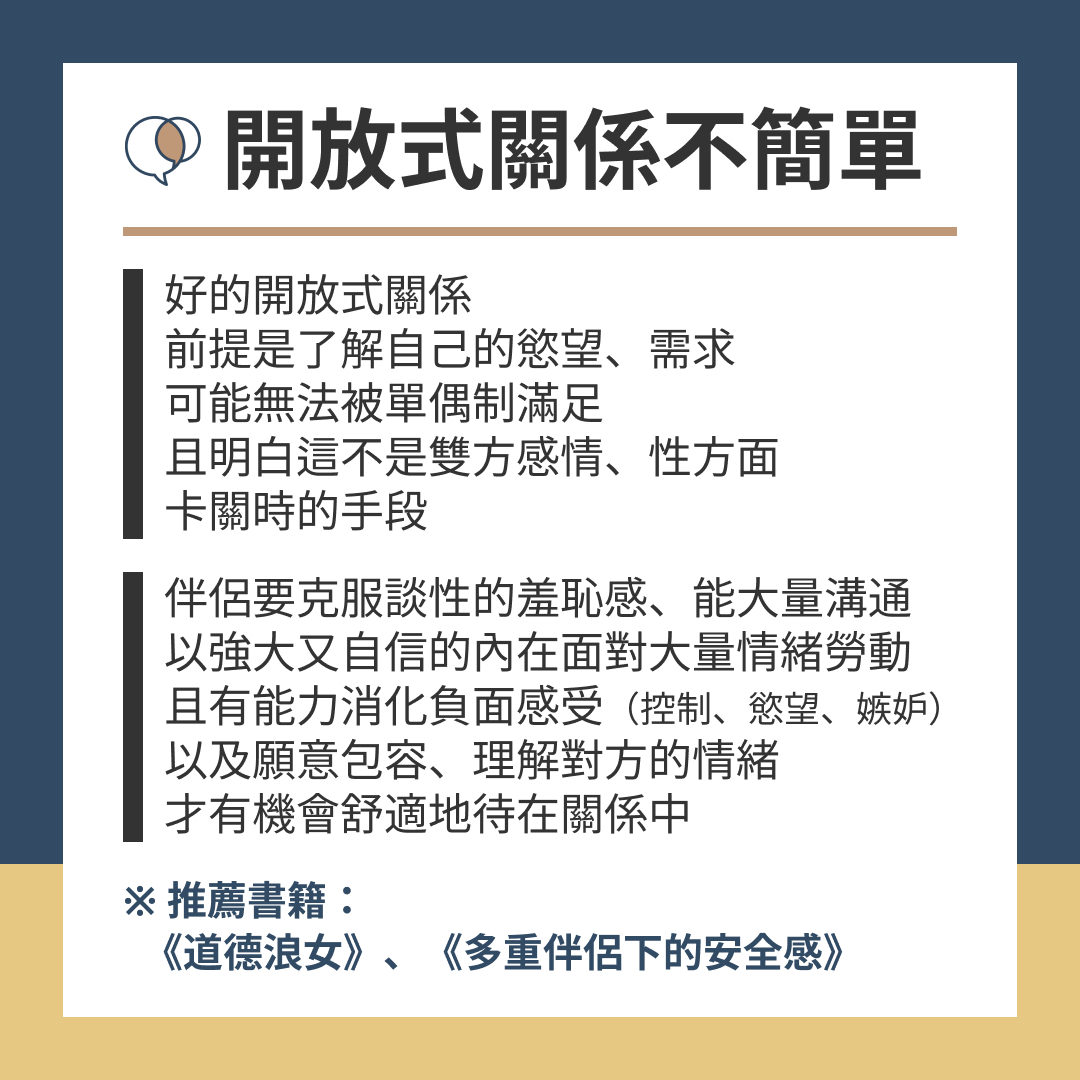 ※ 推薦書籍:《道德浪女》、《多重伴侶下的安全感》