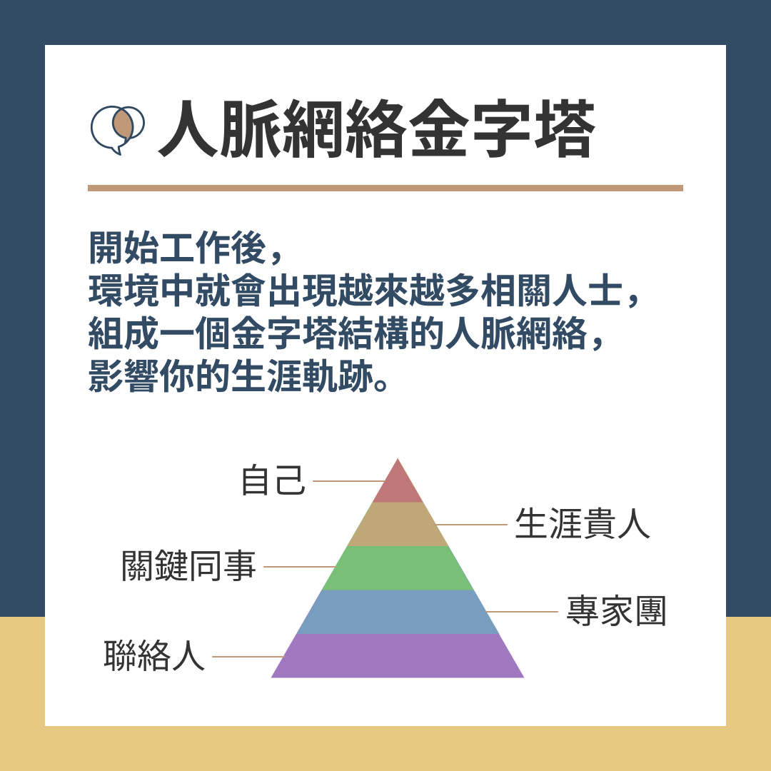 開始工作後,環境中就會出現越來越多相關人士,組成一個金字塔結構的人脈網絡,影響你的生涯軌跡