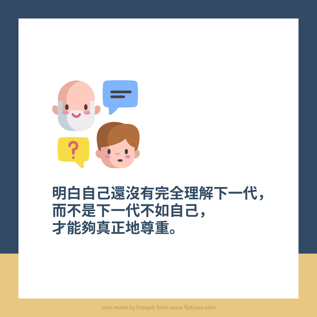 → 明白自己還沒有完全理解下一代,而不是下一代不如自己,才能夠真正地尊重。