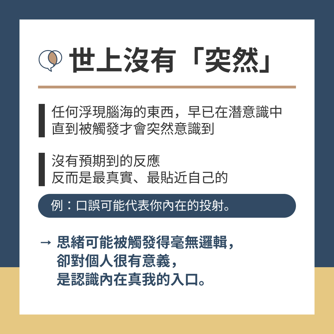 → 思緒可能被觸發得毫無邏輯,卻對個人很有意義,是認識內在真我的入口。