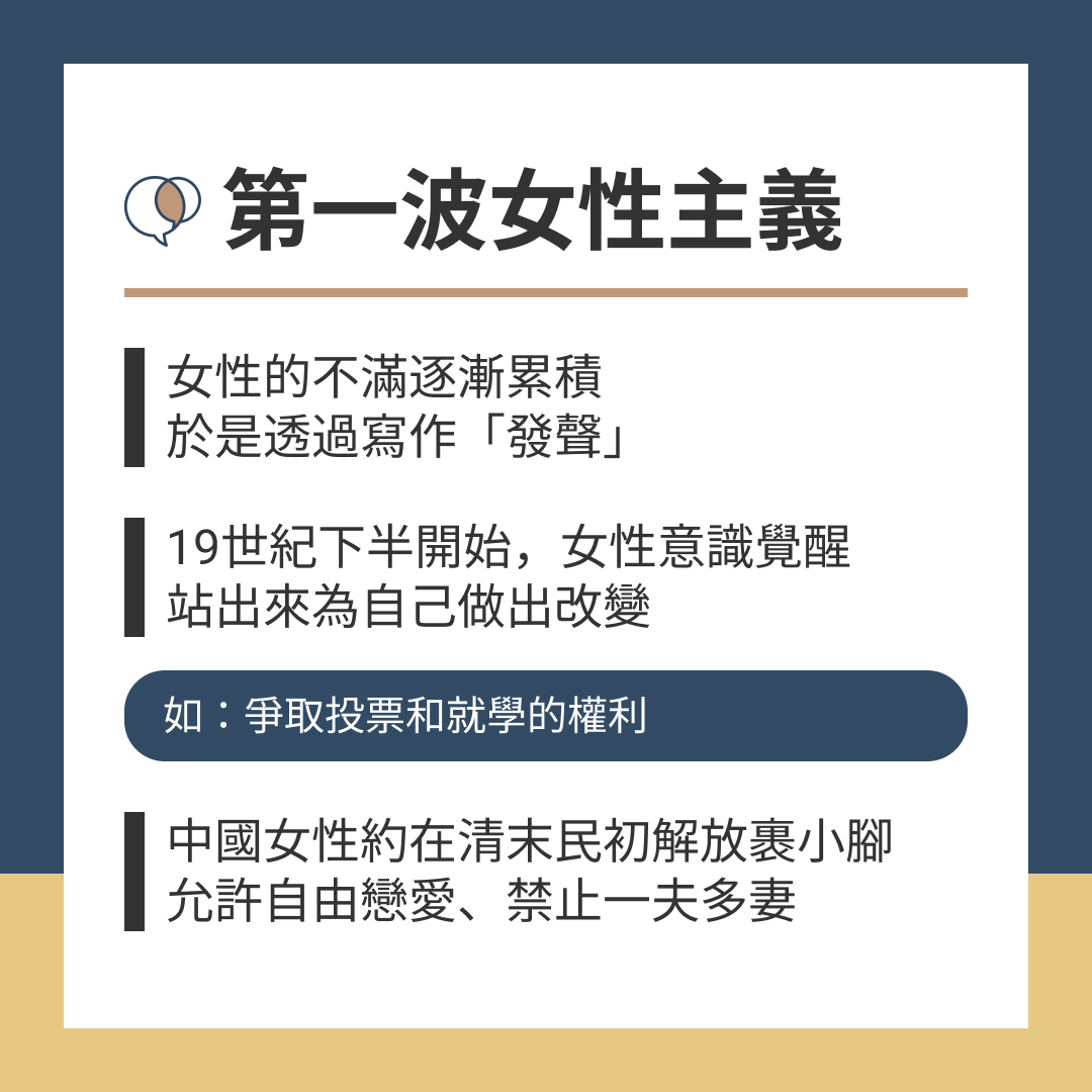 19世紀下半開始,女性意識覺醒、站出來為自己做出改變,如:爭取投票和就學的權利