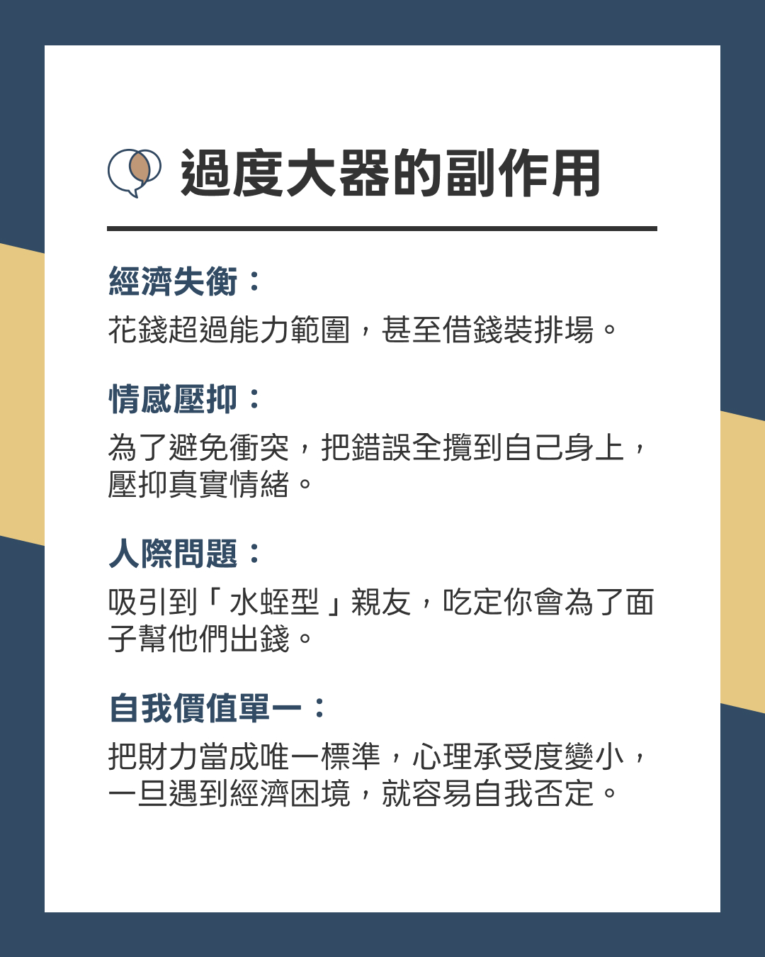 → 假如有男生很敢花錢在女生身上,但是不花時間陪對方、不會給情感價值、不在意別人的感受,你還會覺得他「大器」嗎?