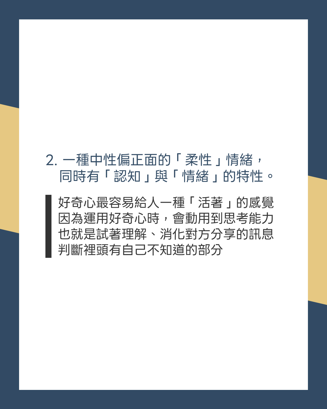 2. 一種中性偏正面的「柔性」情緒,同時有「認知」與「情緒」的特性