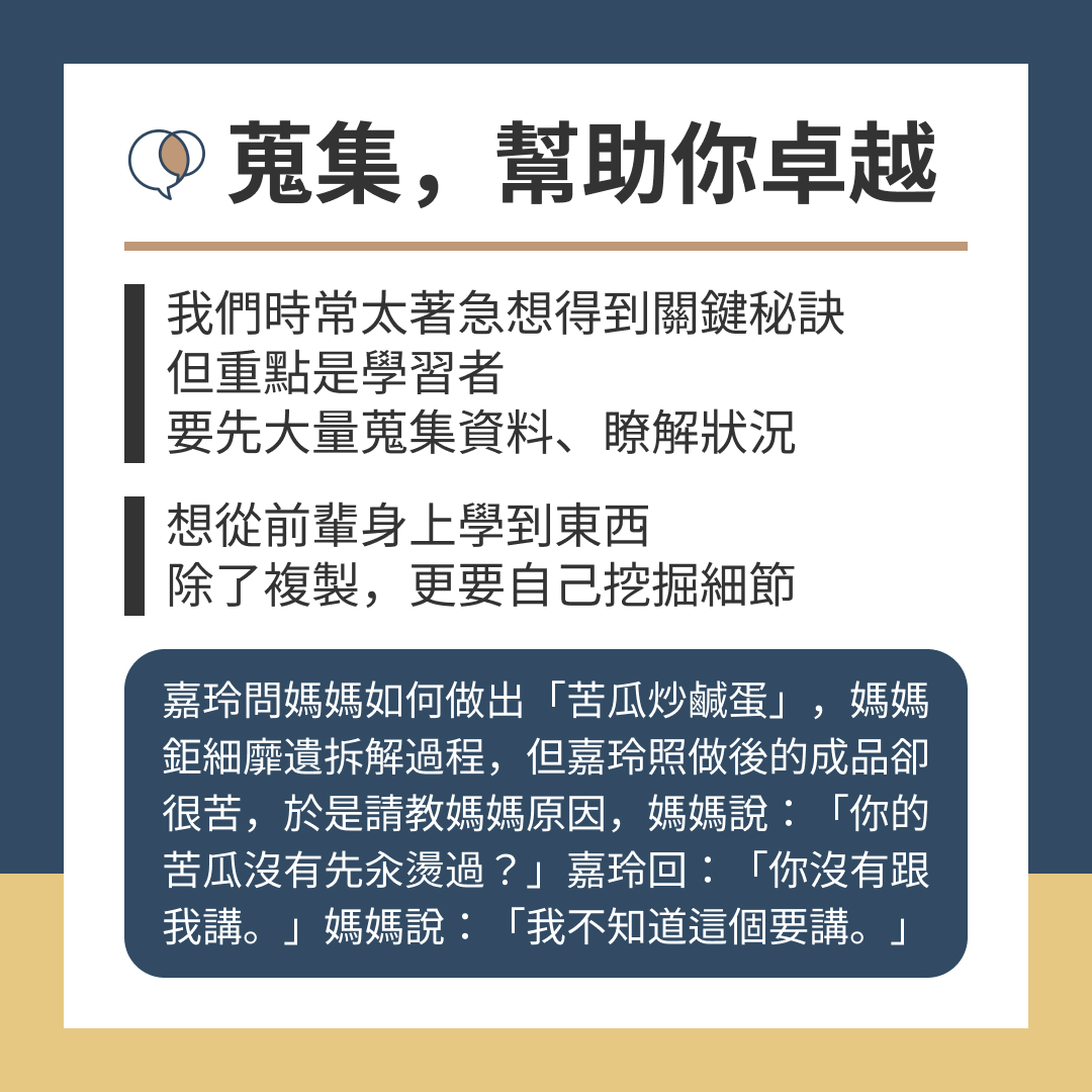 學習者要先大量蒐集資料、瞭解狀況