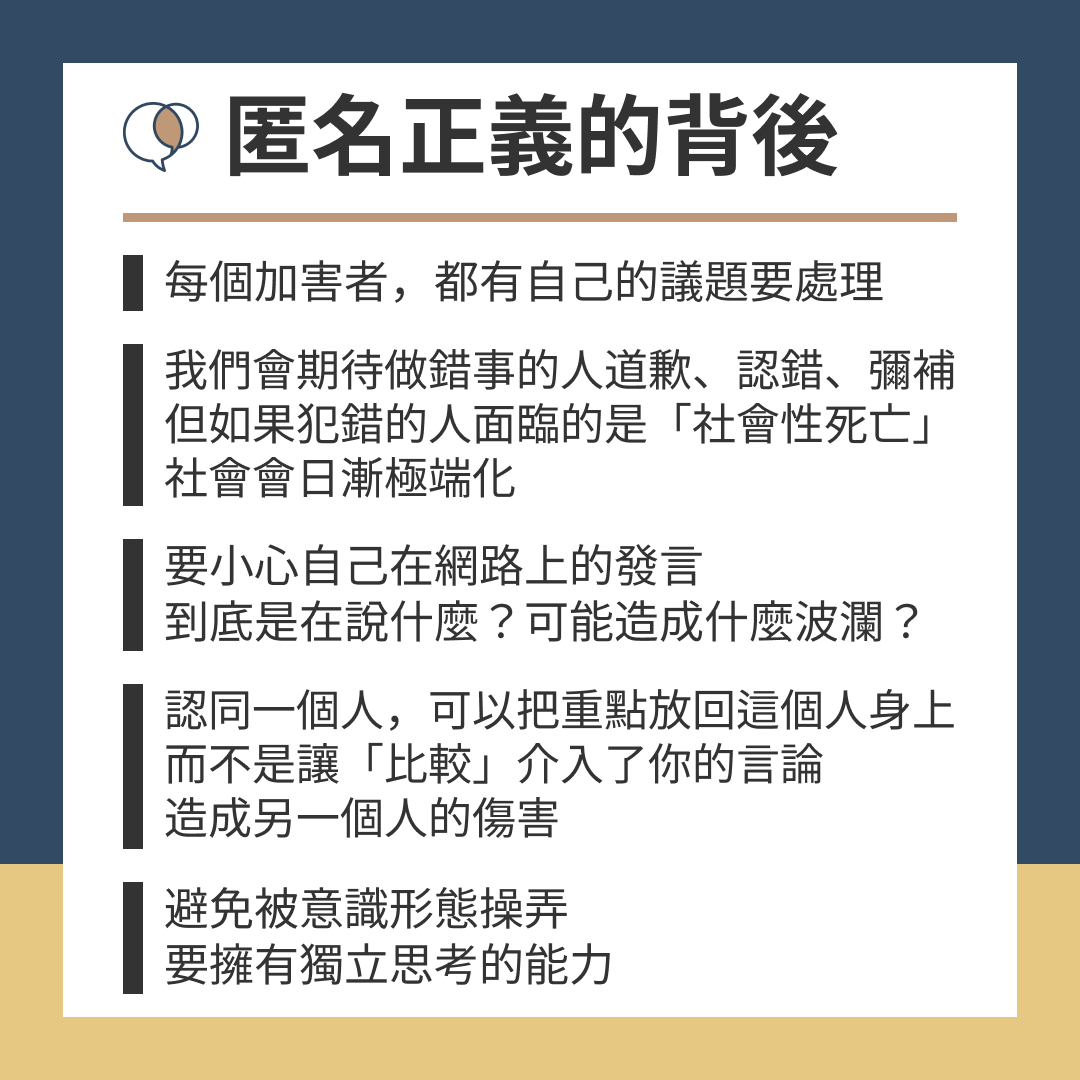 - 每個人都可能犯錯,我們會期待做錯事的人道歉、認錯、彌補,但如果犯錯的人面臨的是「社會性死亡」,社會會日漸極端化
