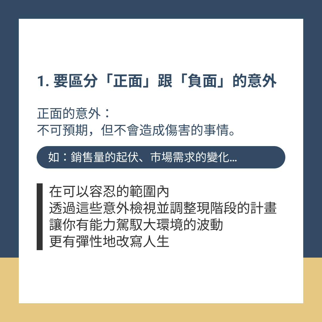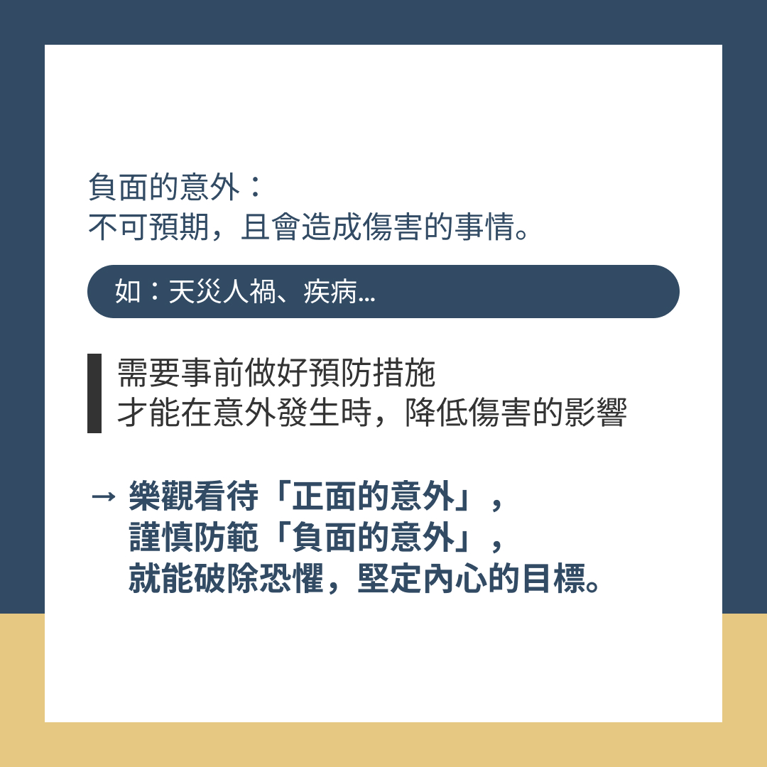 → 樂觀看待「正面的意外」,謹慎防範「負面的意外」,就能破除恐懼,堅定內心的目標。