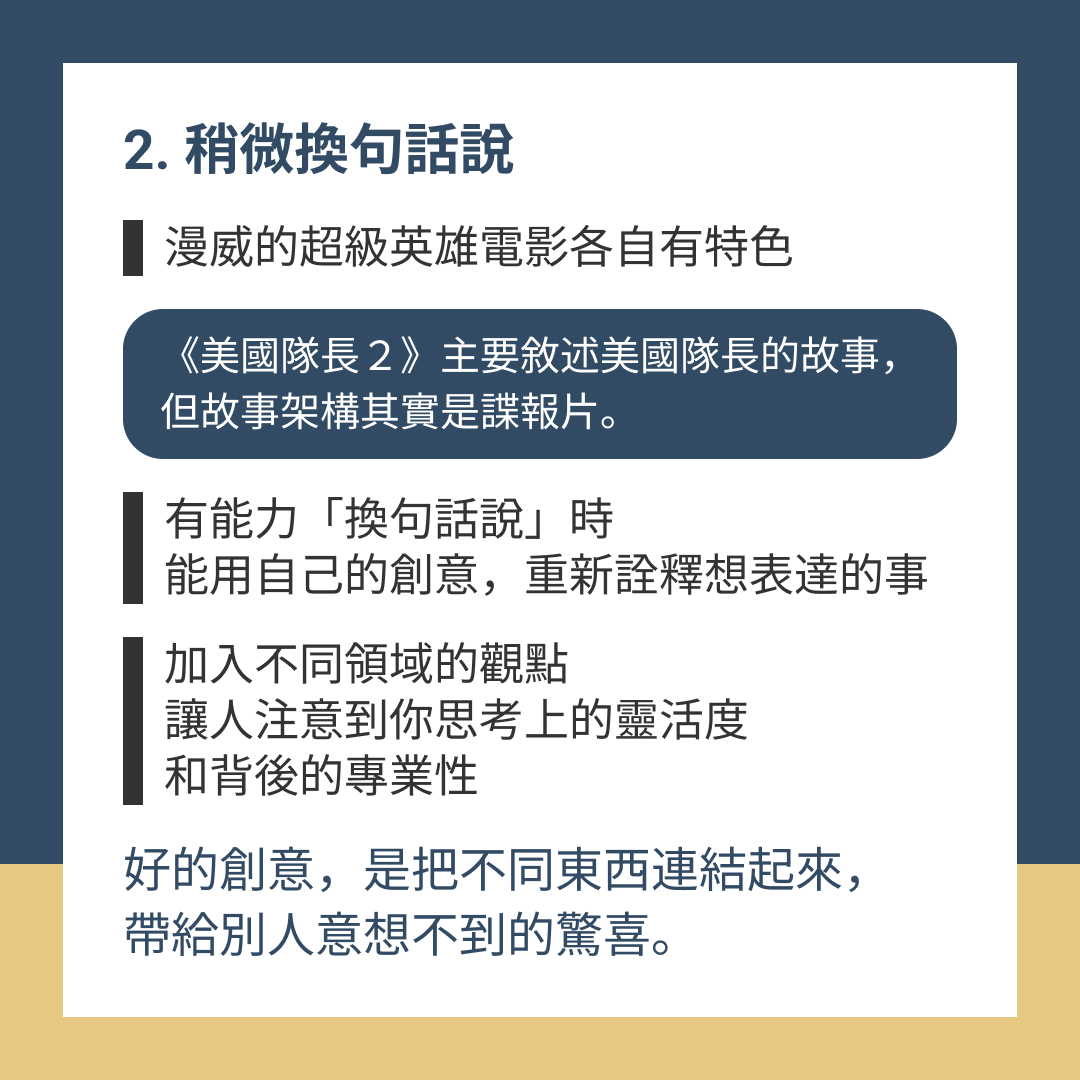 有能力「換句話說」時,就能用自己的創意,重新詮釋你想表達的事情