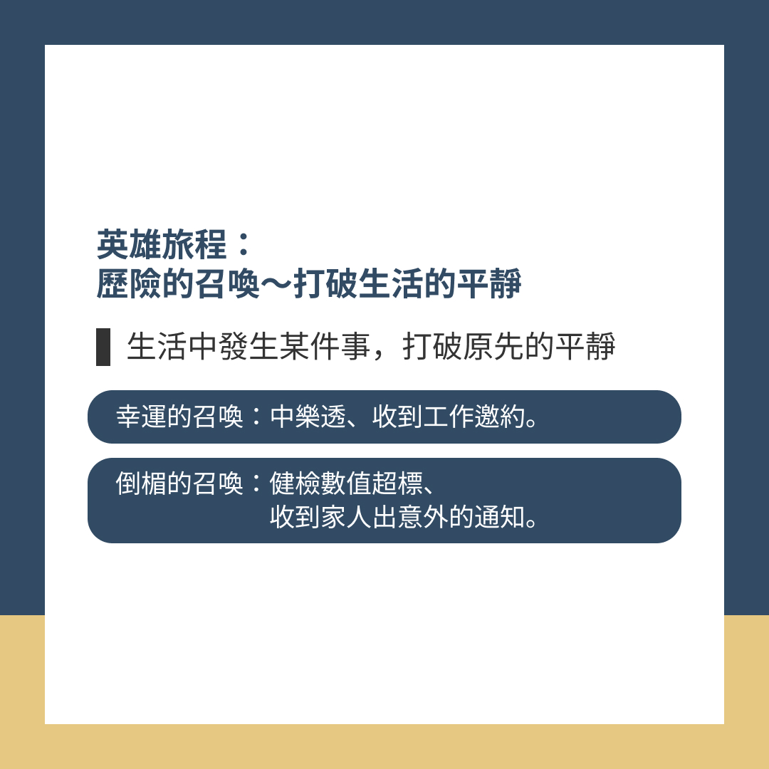 → 認真觀察、體會生活裡發生的事,或許歷險的召喚就在你身邊。