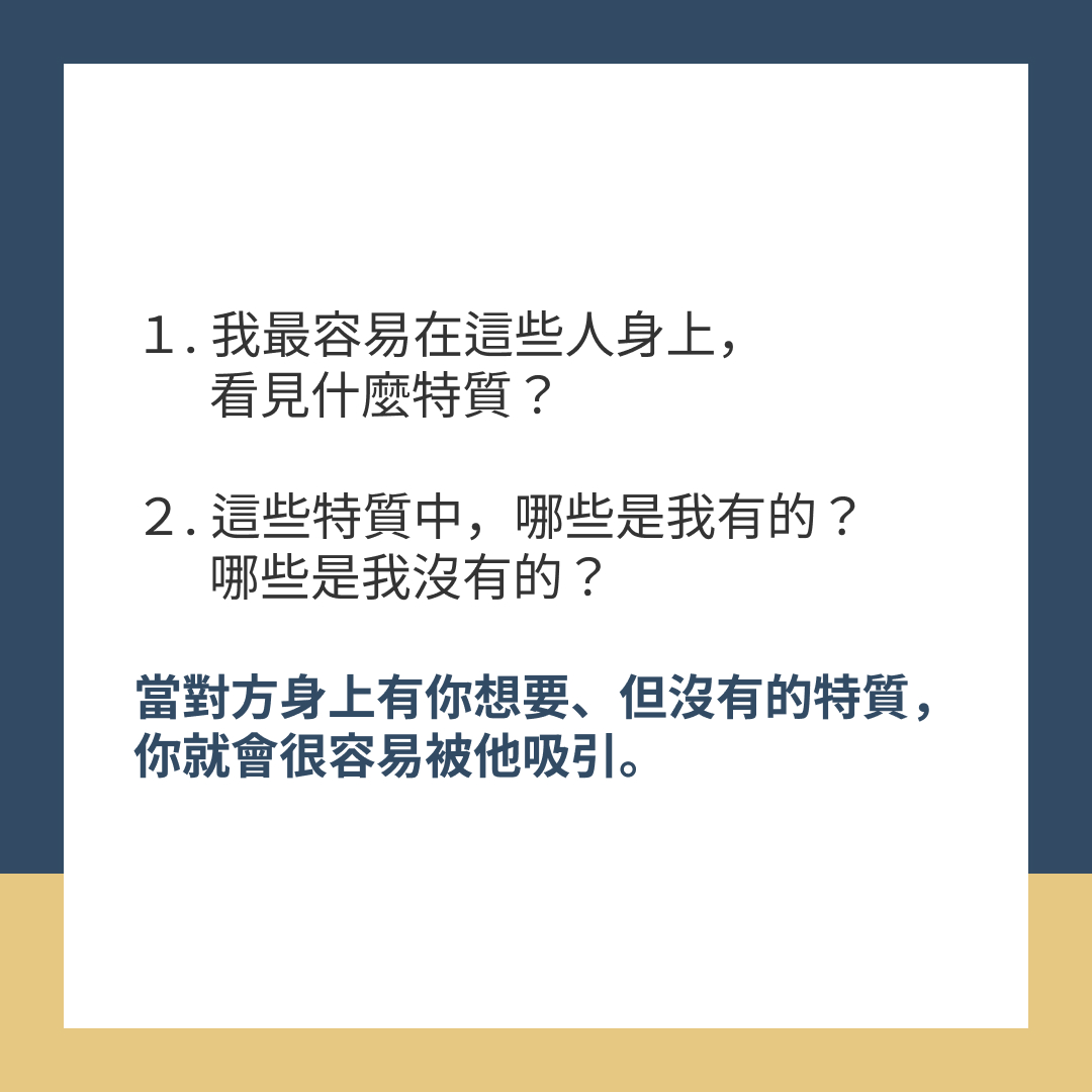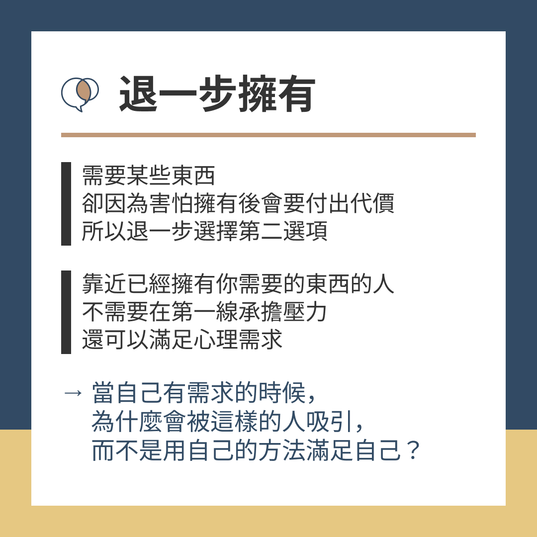 → 當自己有需求的時候,為什麼會被這樣的人吸引,而不是用自己的方法滿足自己?