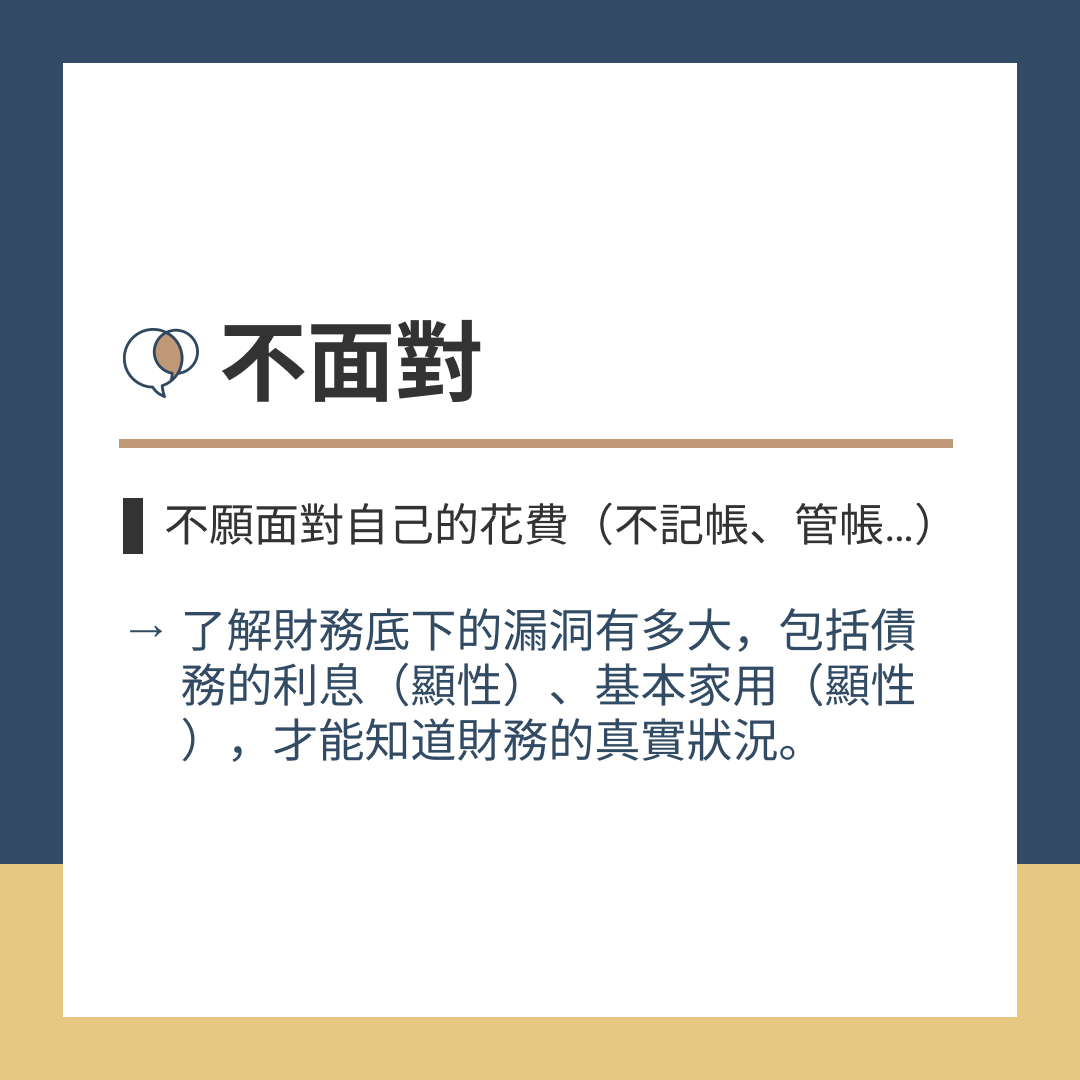 - 不願意面對自己的花費(不記帳、不管帳…)