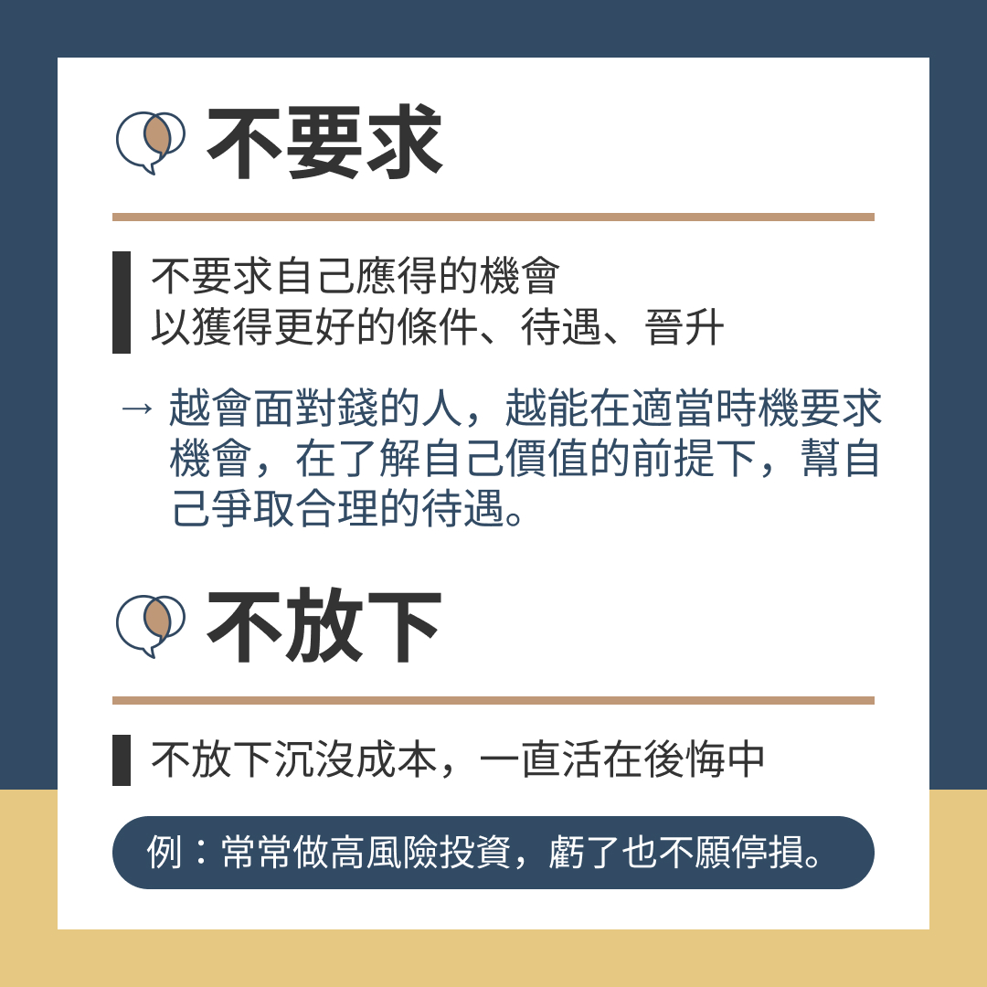 → 越會面對錢的人,越能在適當時機要求機會,在了解自己價值的前提下,幫自己爭取合理的待遇。