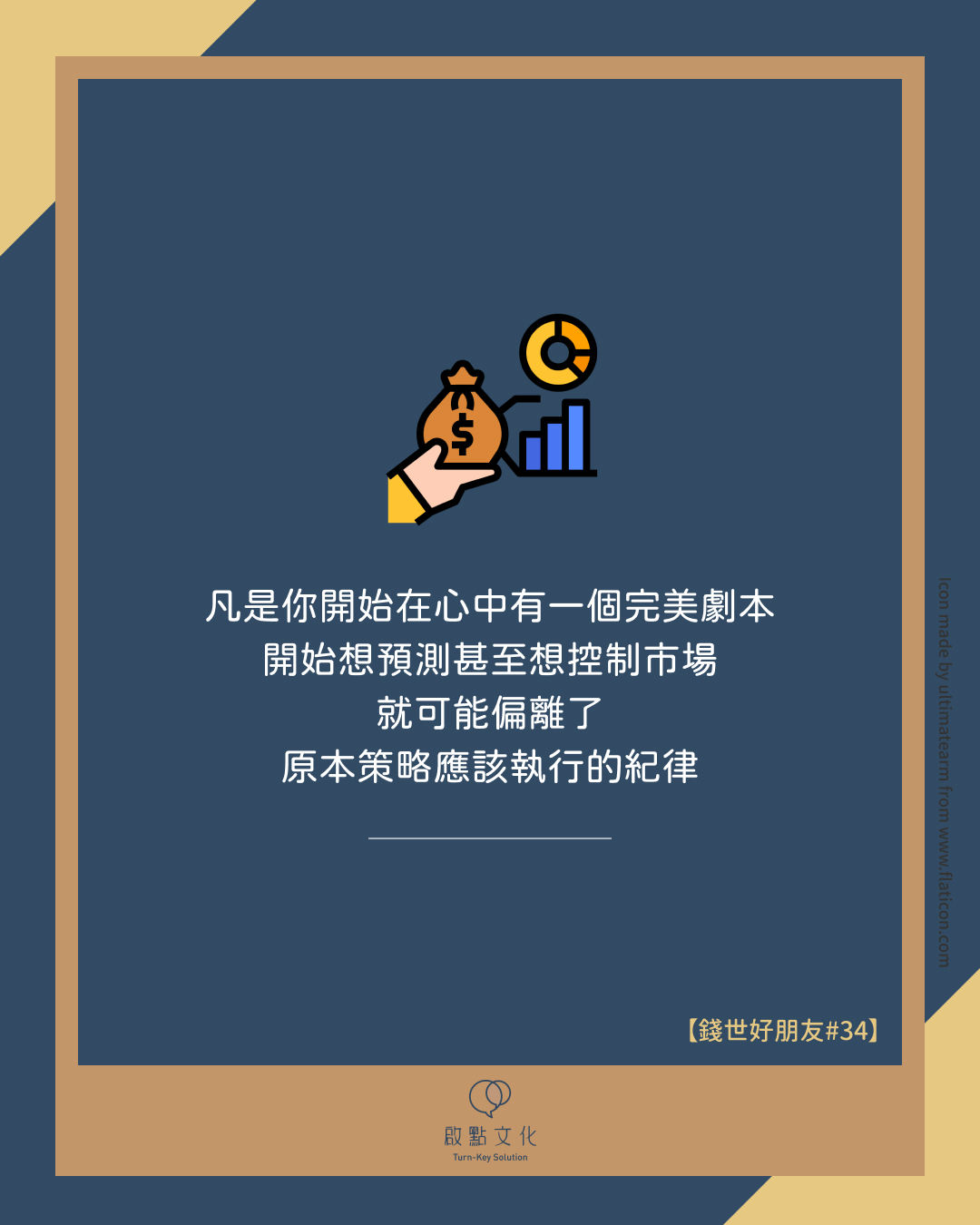 凡是你開始在心中有一個完美劇本,開始想預測甚至想控制市場,就可能偏離了原本策略應該執行的紀律
