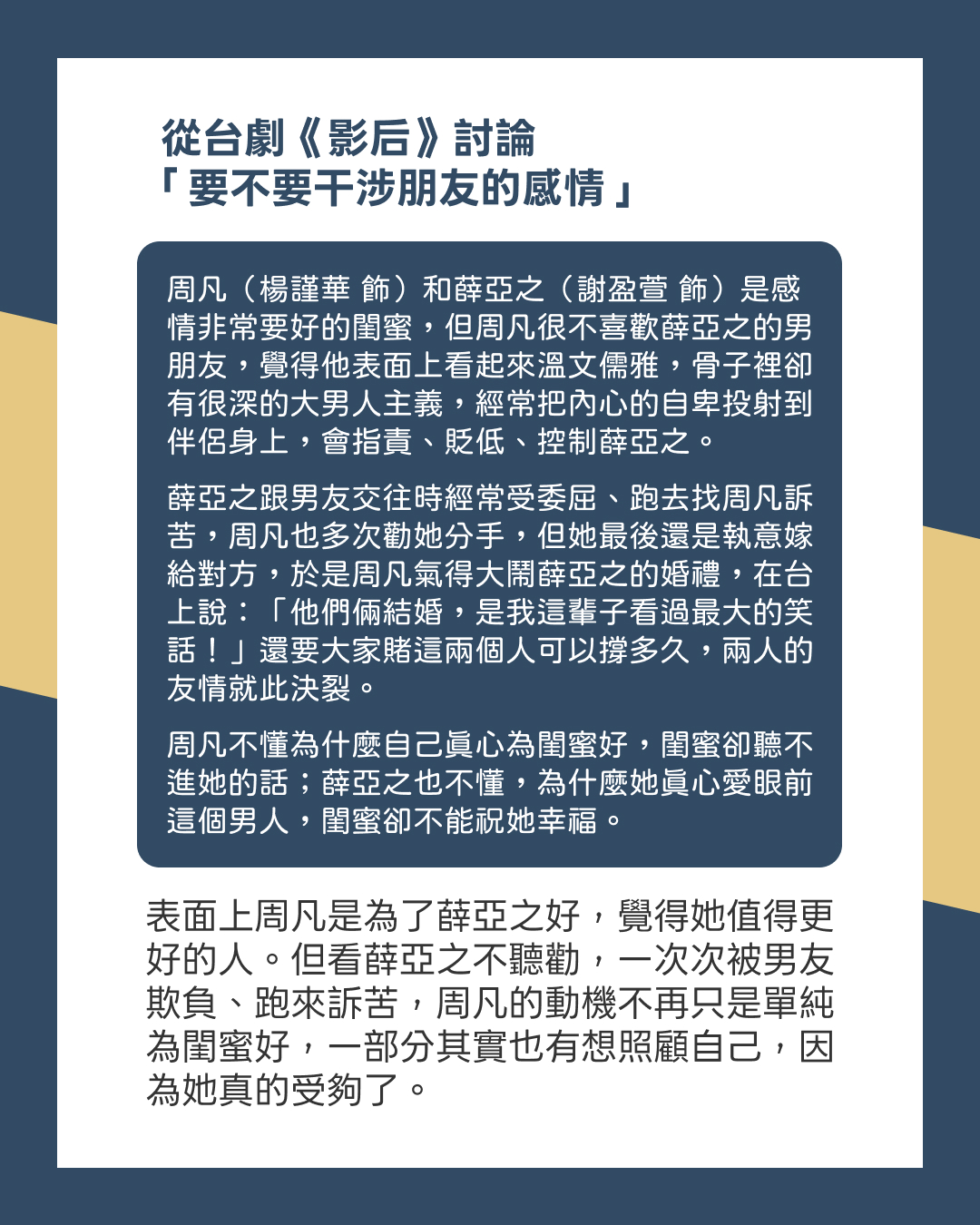 從台劇《影后》討論「要不要干涉朋友的感情」