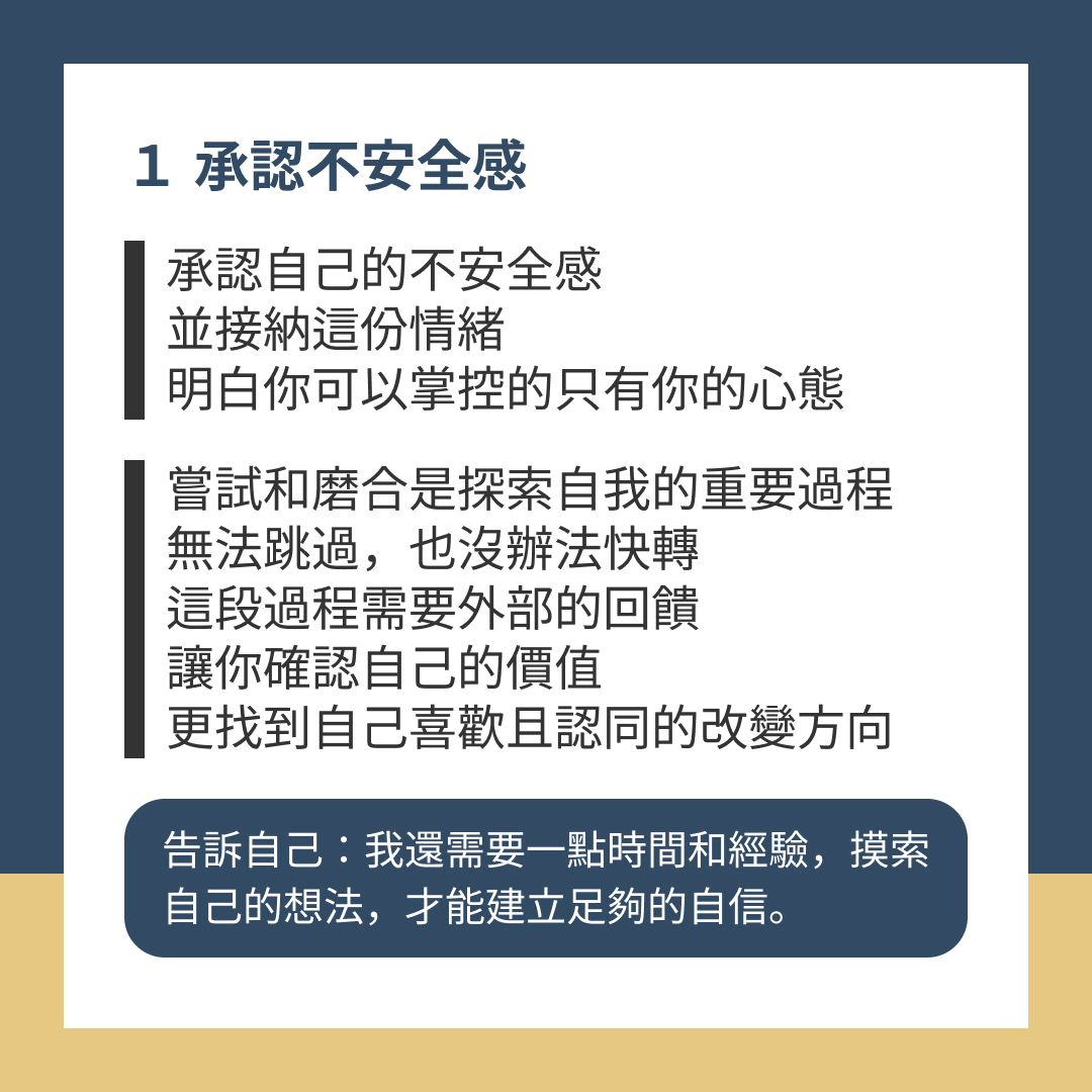 可以告訴自己:我還需要一點時間和經驗,摸索自己的想法,才能建立足夠的自信。
