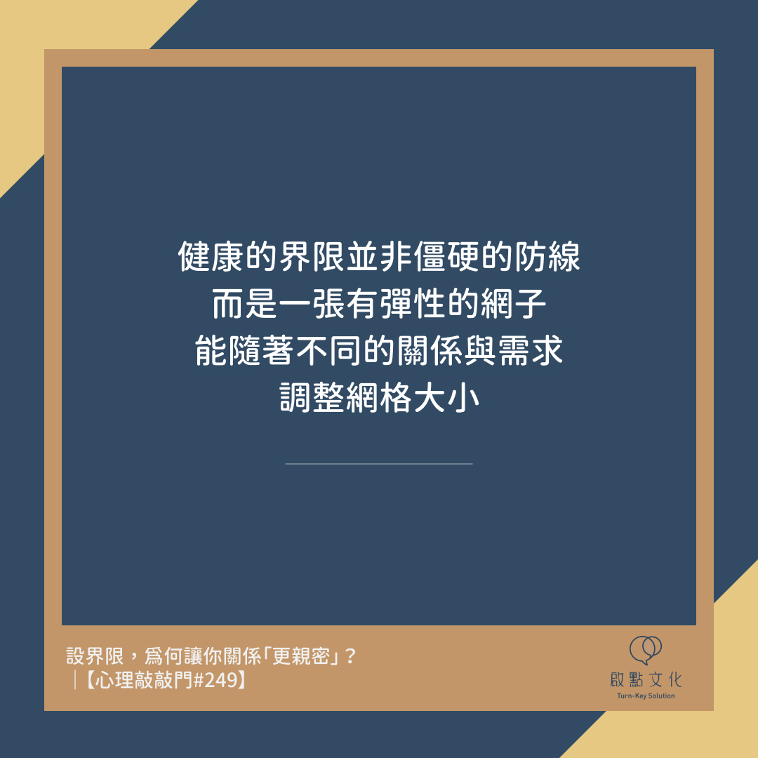 健康的界限並非僵硬的防線,而是一張有彈性的網子,能隨著不同的關係與需求調整網格大小