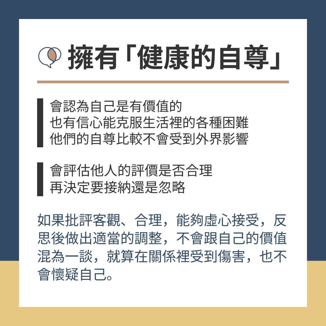 → 需要靠比較、攻擊獲得的自信,都不是真正健康的自尊。