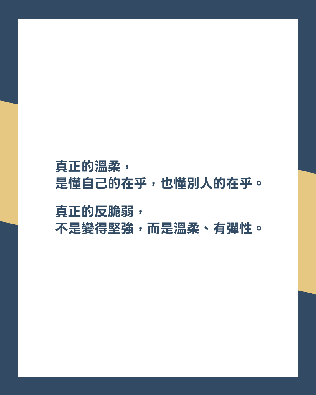 → 「一味討好與順從」只是「看起來」溫柔,實際上讓人無法做自己、守護自己的底線。真正的溫柔,是懂自己的在乎,也懂別人的在乎。
