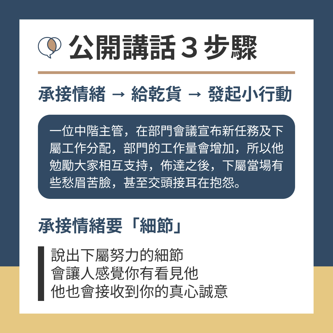 公開講話3步驟:承接情緒 → 給乾貨 → 發起小行動