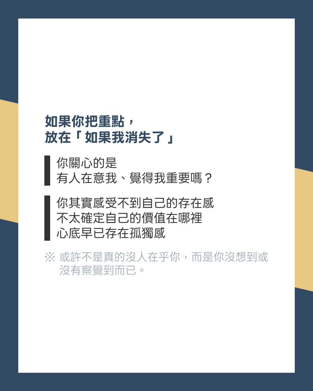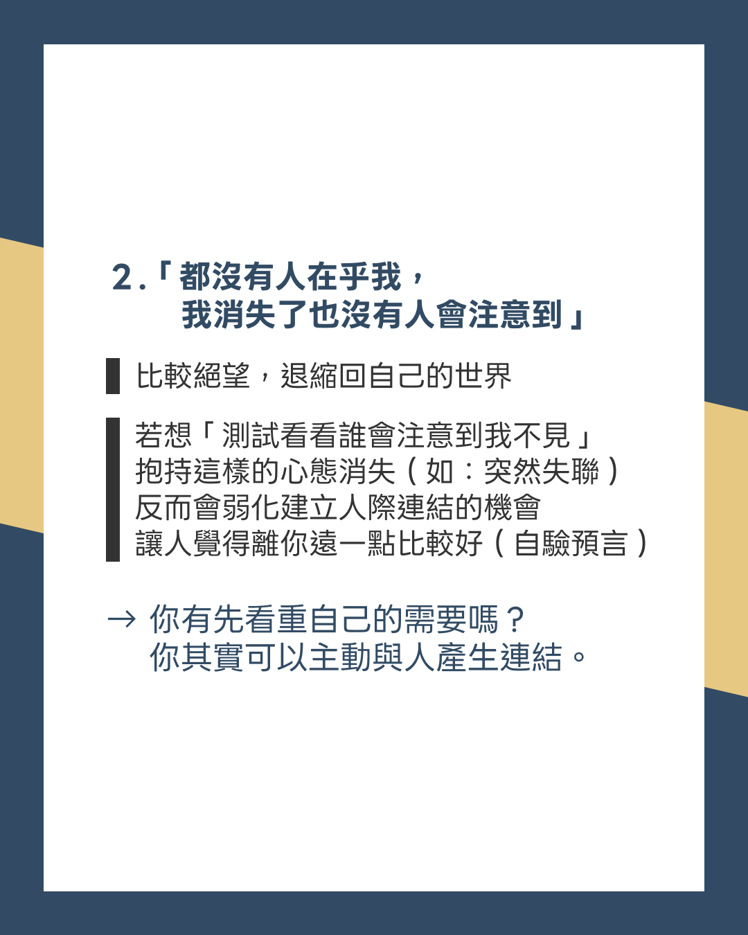 2. 「都沒有人在乎我,我消失了也沒有人會注意到」