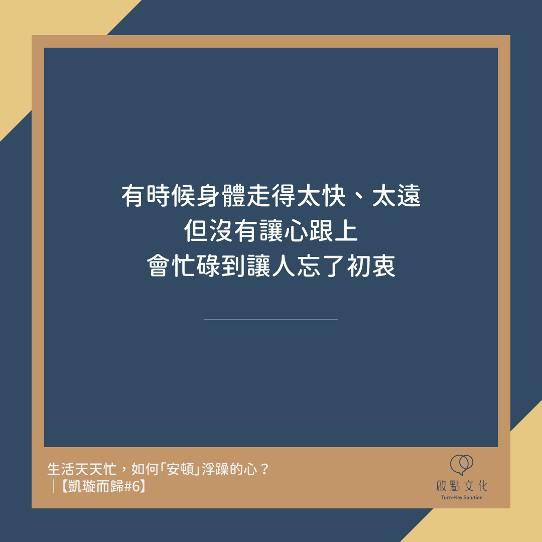 生活天天忙,如何「安頓」浮躁的心?|【凱璇而歸#6】