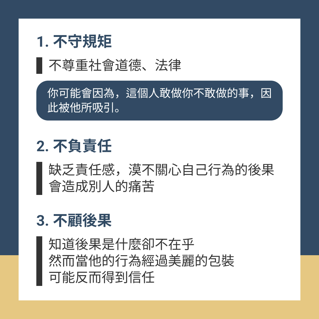 缺乏責任感,漠不關心自己行為的後果,會造成別人的痛苦