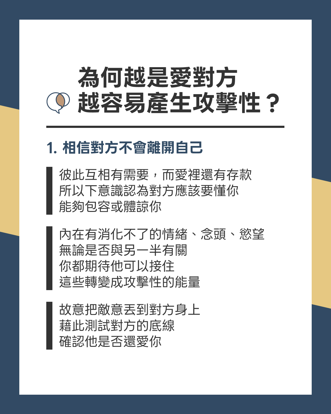 內在有消化不了的情緒、念頭、慾望,無論是否與另一半有關,你都期待他可以接住這些轉變成攻擊性的能量